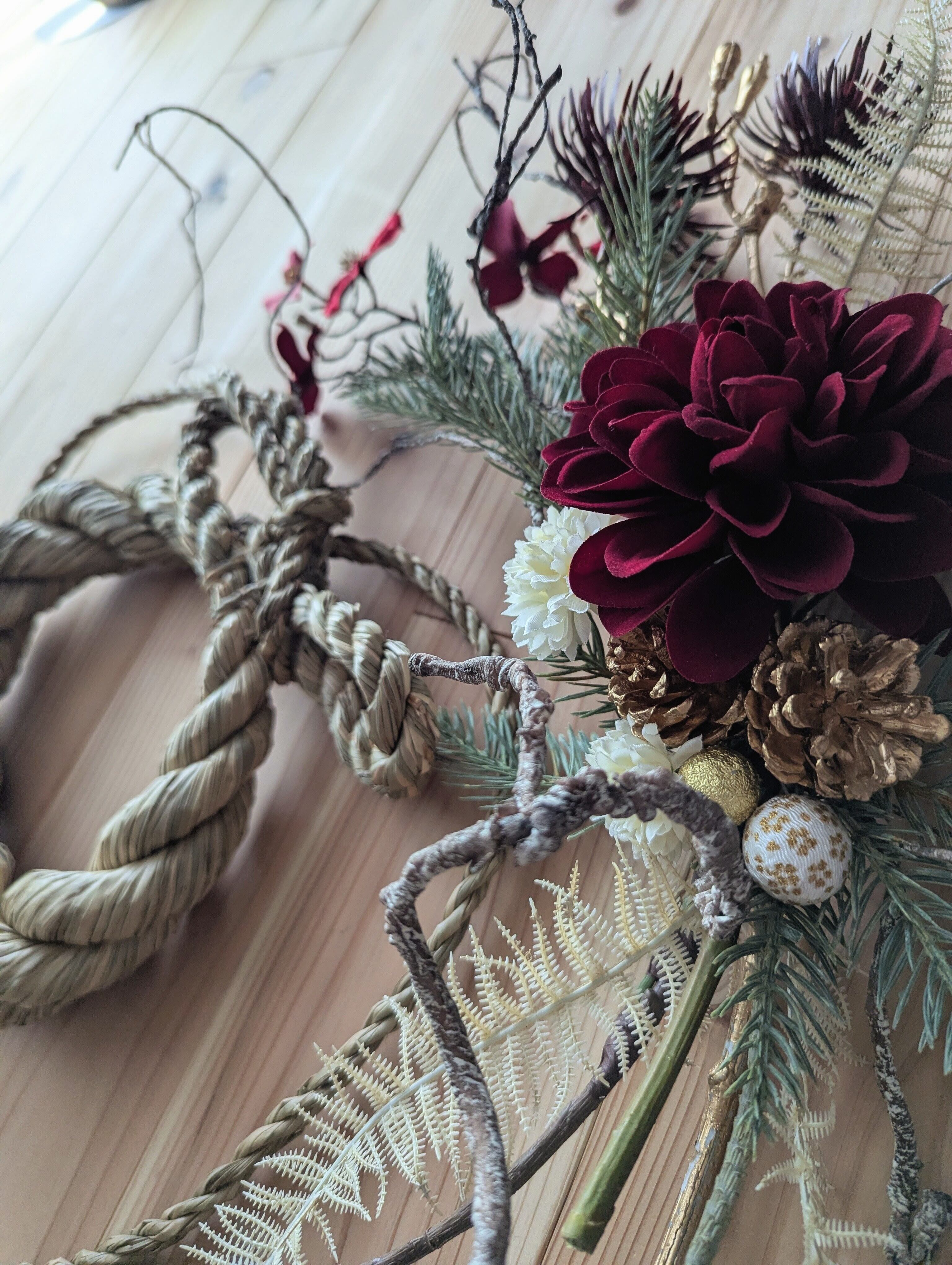 季節の移ろいも静かに感じられる「しめ縄 お正月飾り」に仕上がりました。