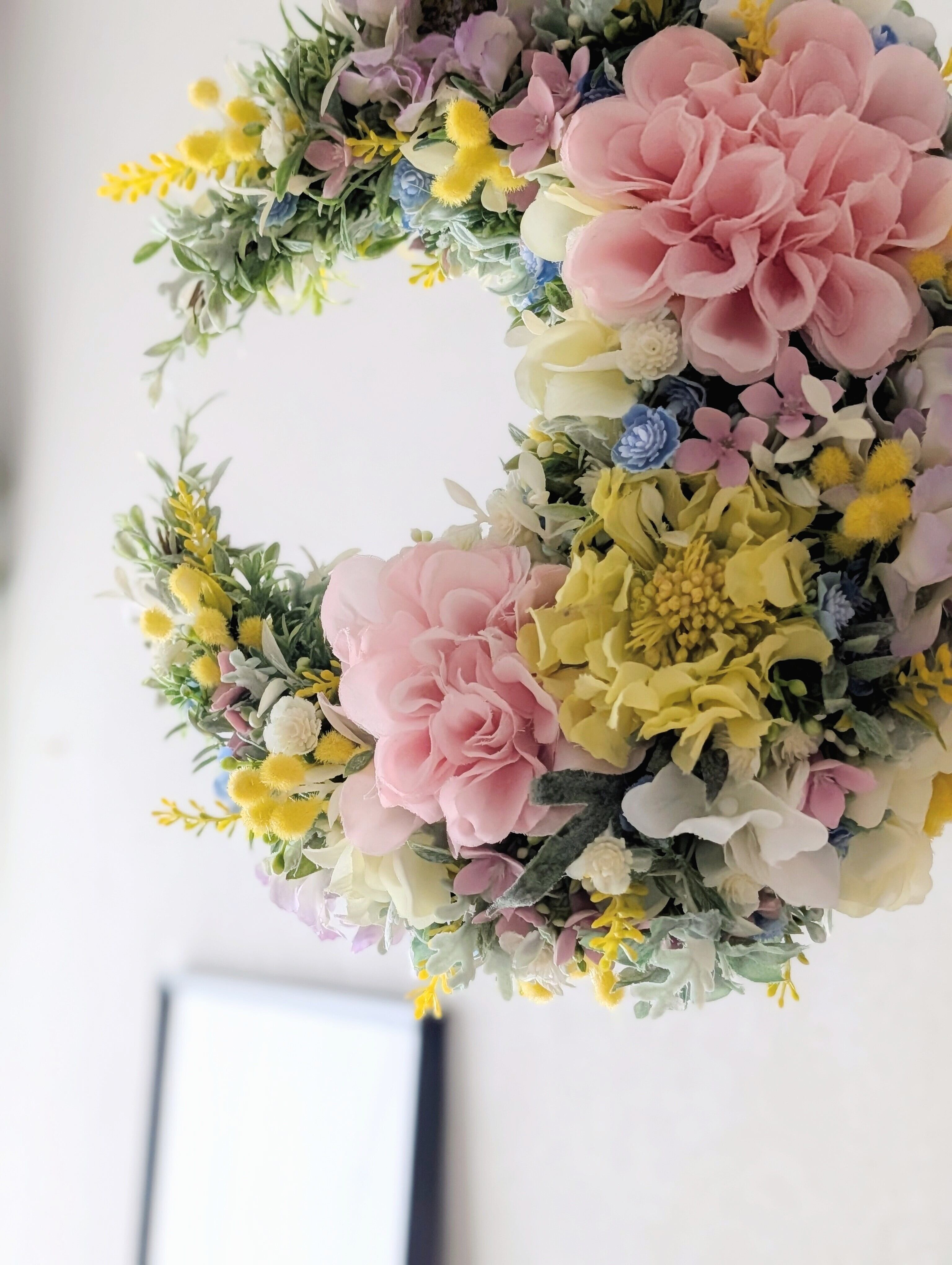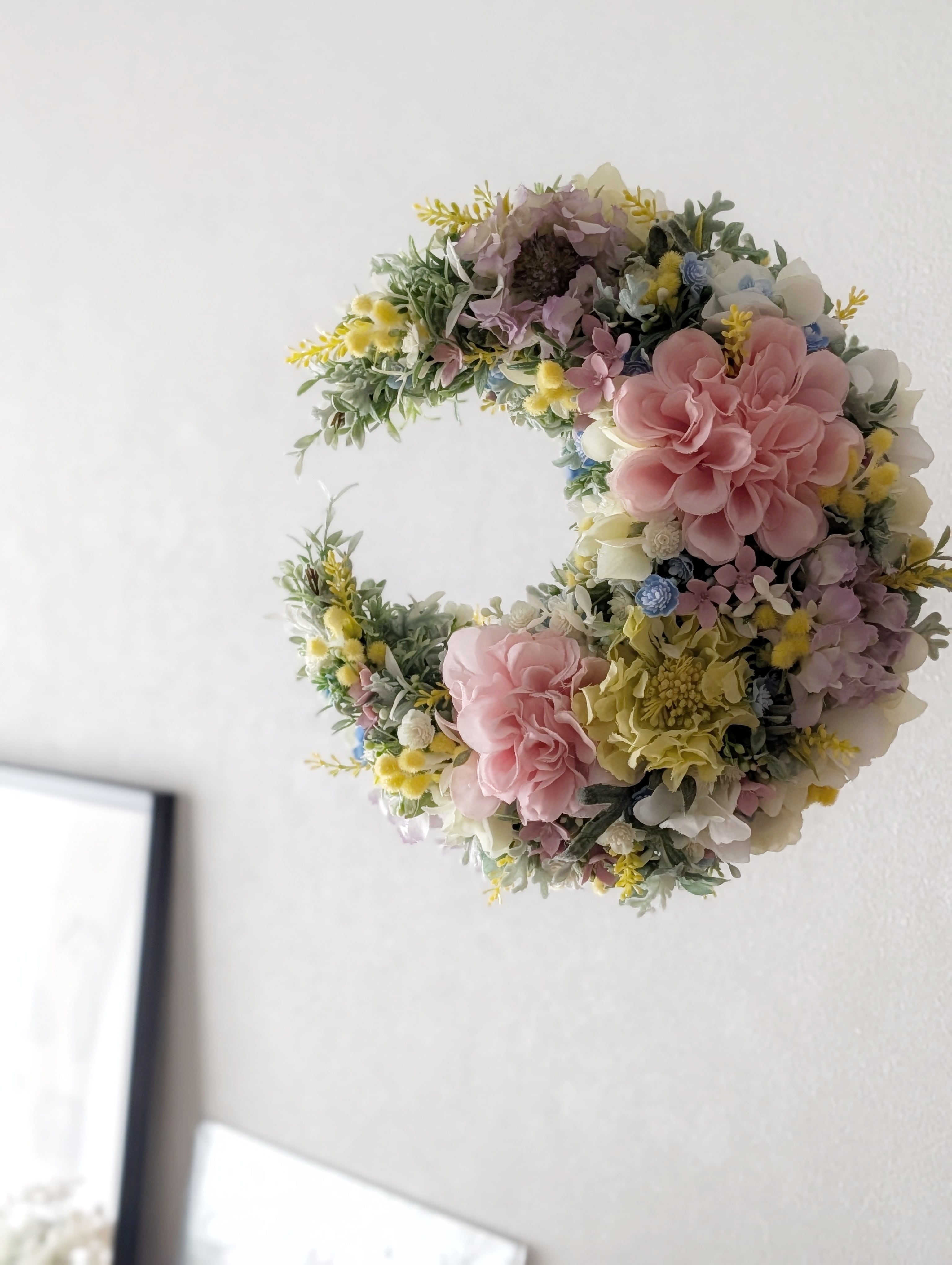 #三日月リース #クレッセントリース #360°リース #フライングリース #リース #春リース #吊るす #壁掛け #壁飾り #ナチュラル #パステルカラー #癒し #やさしい #爽やか #華やか #豪華 #インテリア雑貨 #花雑貨 #空間ディスプレイ #おしゃれ #リラックス #大人可愛い #プレゼント #ギフト #模様替え #ご自宅用 #自分ご褒美 #アーティフィシャルフラワー #高品質な造花 #造花 #特別なギフト #店舗装飾用 #飾り #お祝い #誕生日 #記念日