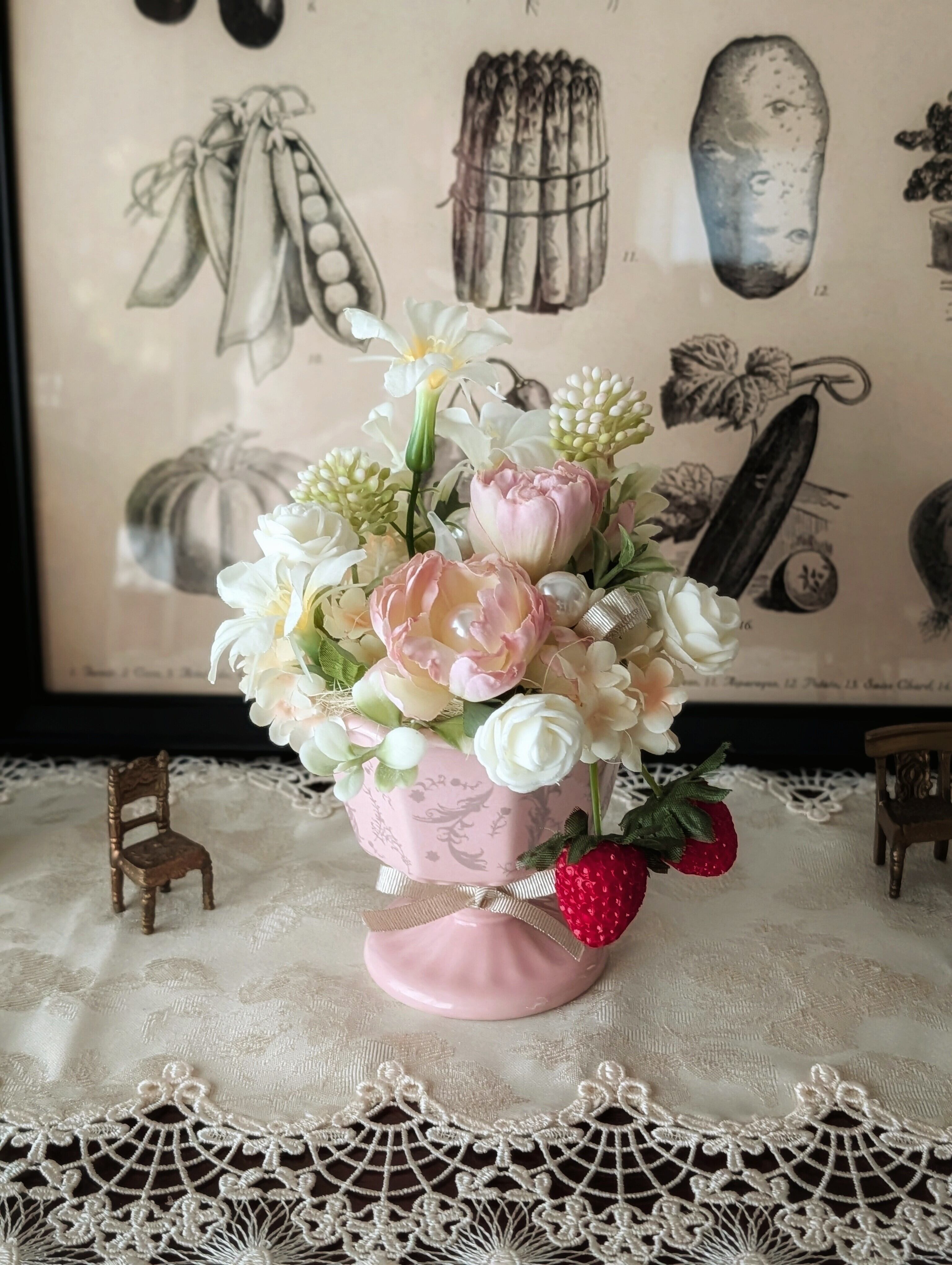 ❥オーダー❥春のメモリアルフラワーArrangement〜ラナンキュラスと苺とキャンドルライト ペット用 お供え花