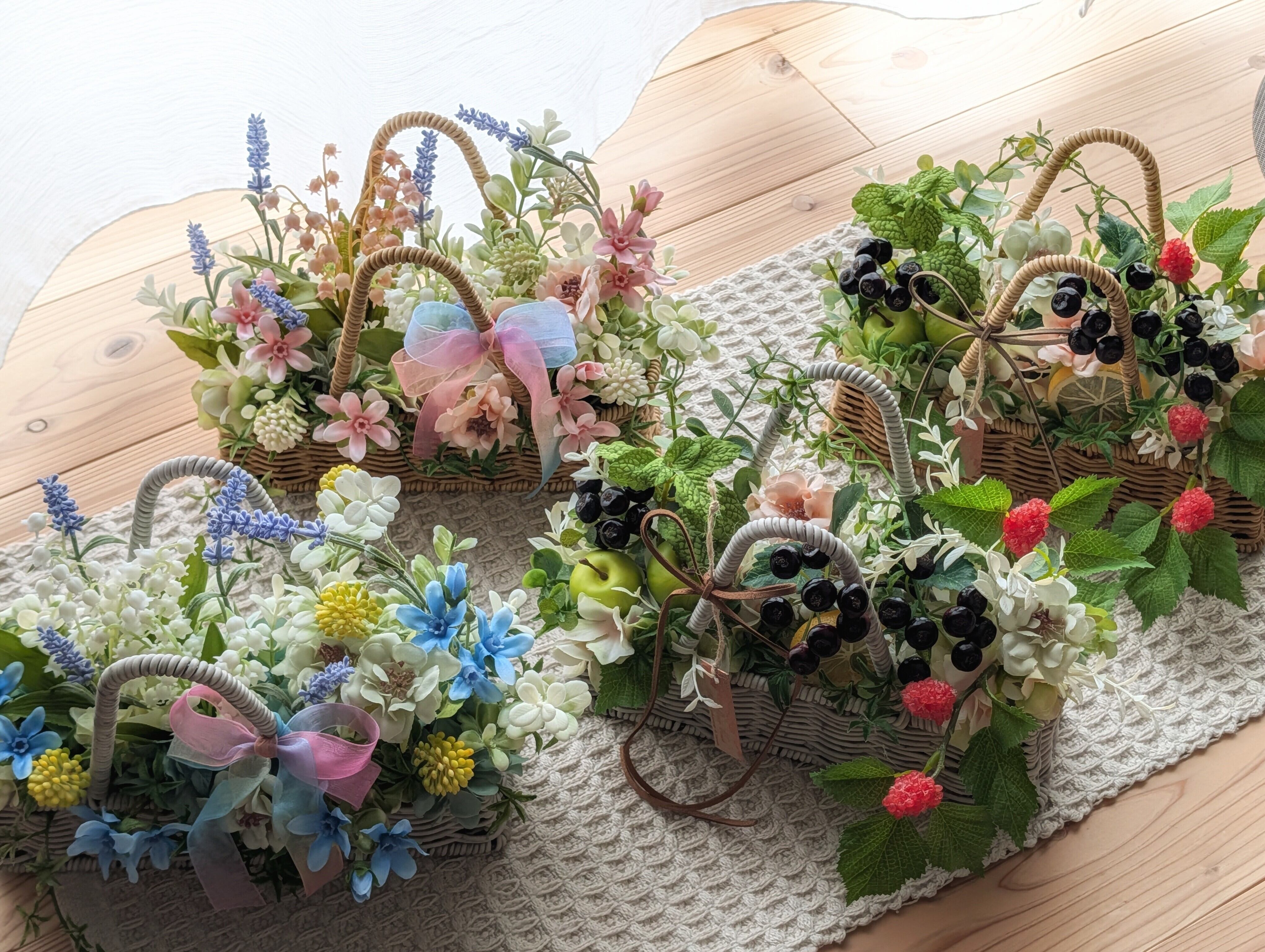 アーティフィシャルフラワー(高品質な造花)で作っており、長く美しい状態を保つことができます。