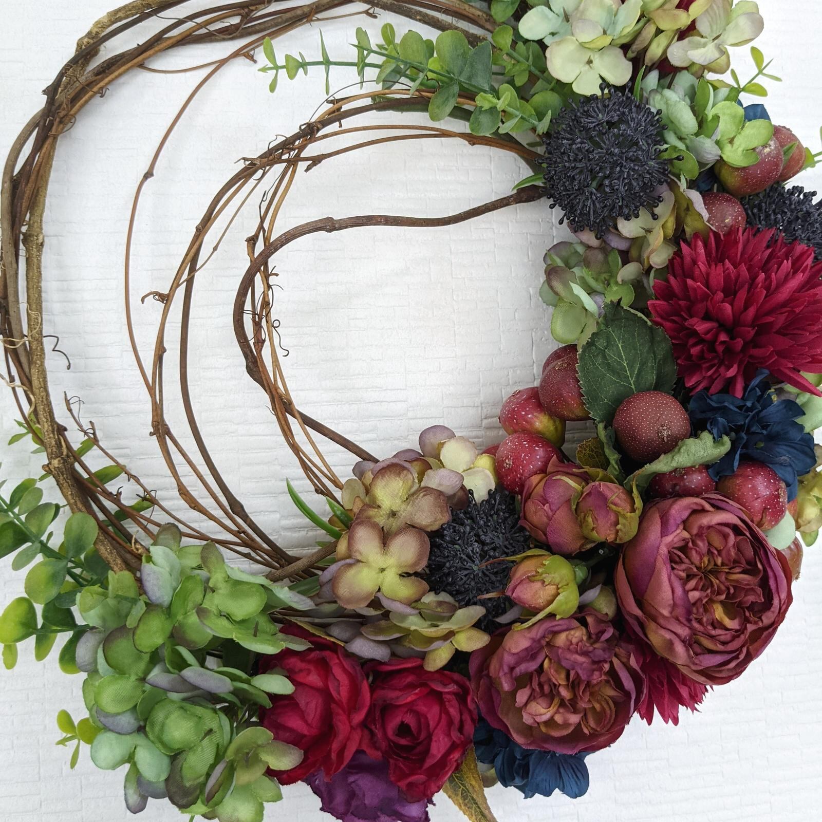 深みの秋色ボルドー natural garden wreath~ドライドローズ×マム×いちじく