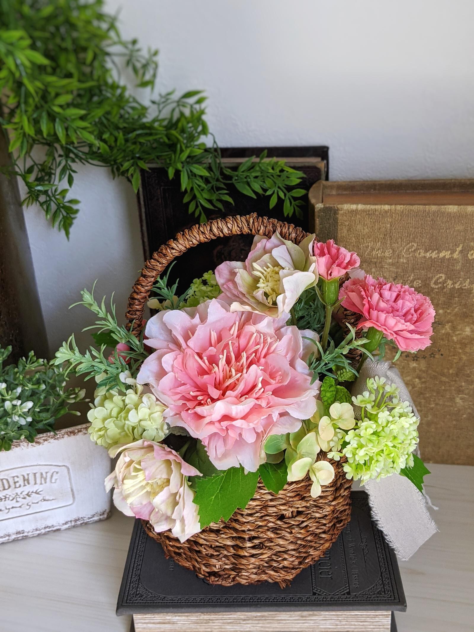 Sold out可愛いピンクのピオニー(芍薬)にスプレー咲きのカーネーションをあしらって、