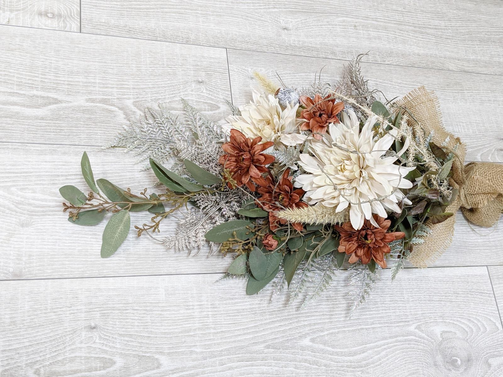 アーティフィシャルフラワーですが、ドライフラワーの様な雰囲気にも見えるようなスワッグに仕上がりました。