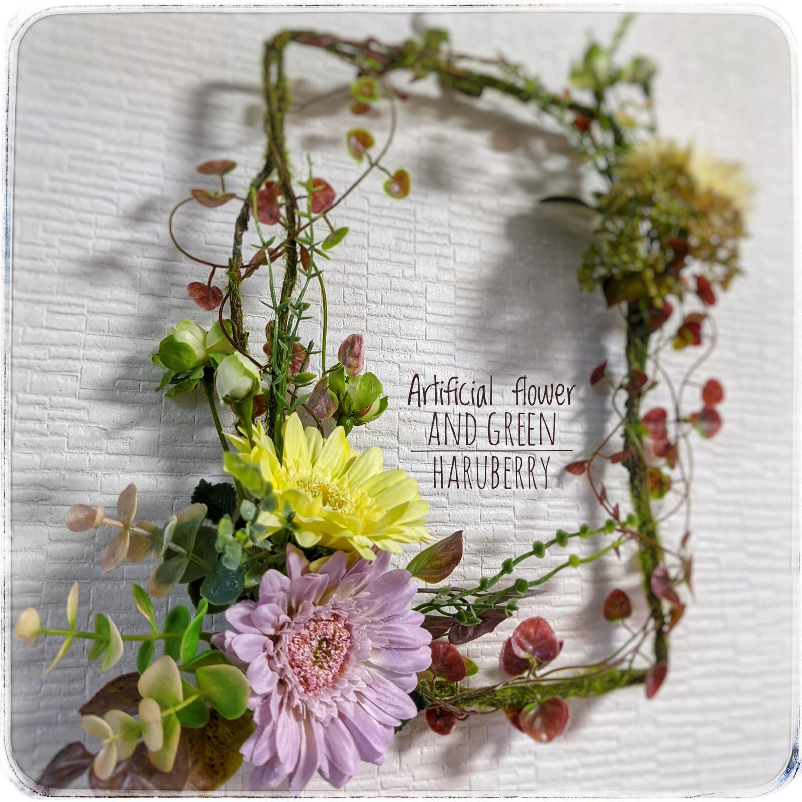 パステルカラー ガーベラのモスフレーム♡ナチュラルテイスト壁飾り