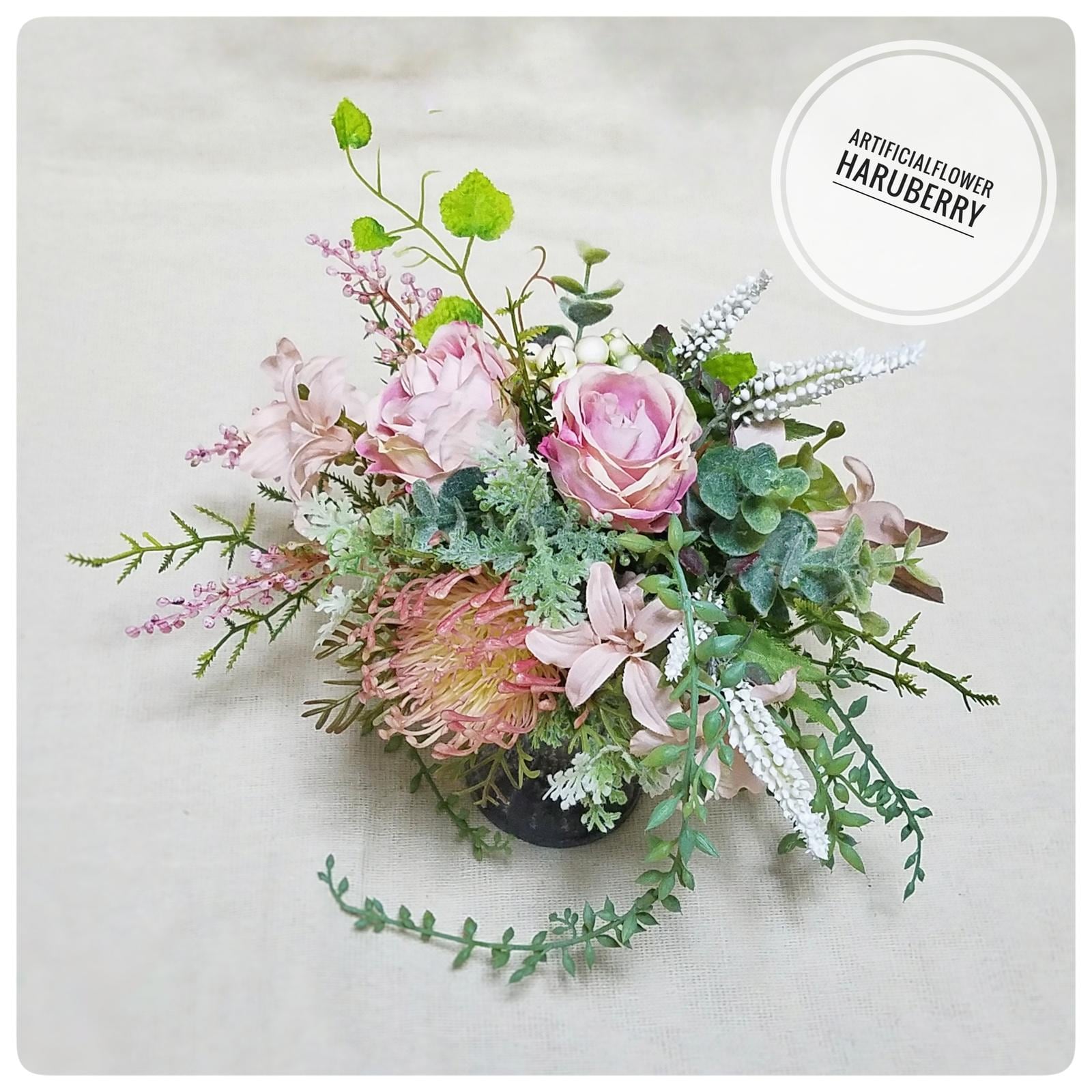 こちらはアーティフィシャルフラワー(高品質な造花)でアレンジしています。