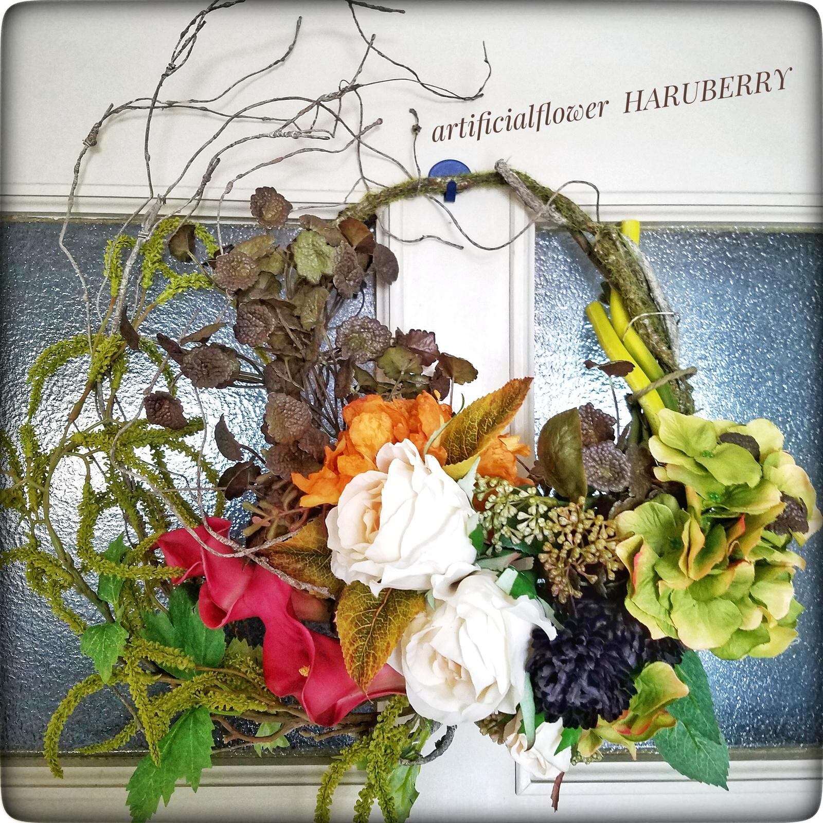 アーティフィシャルフラワーだから出来る色味と本物のようなナチュラルテイストのリースです♪