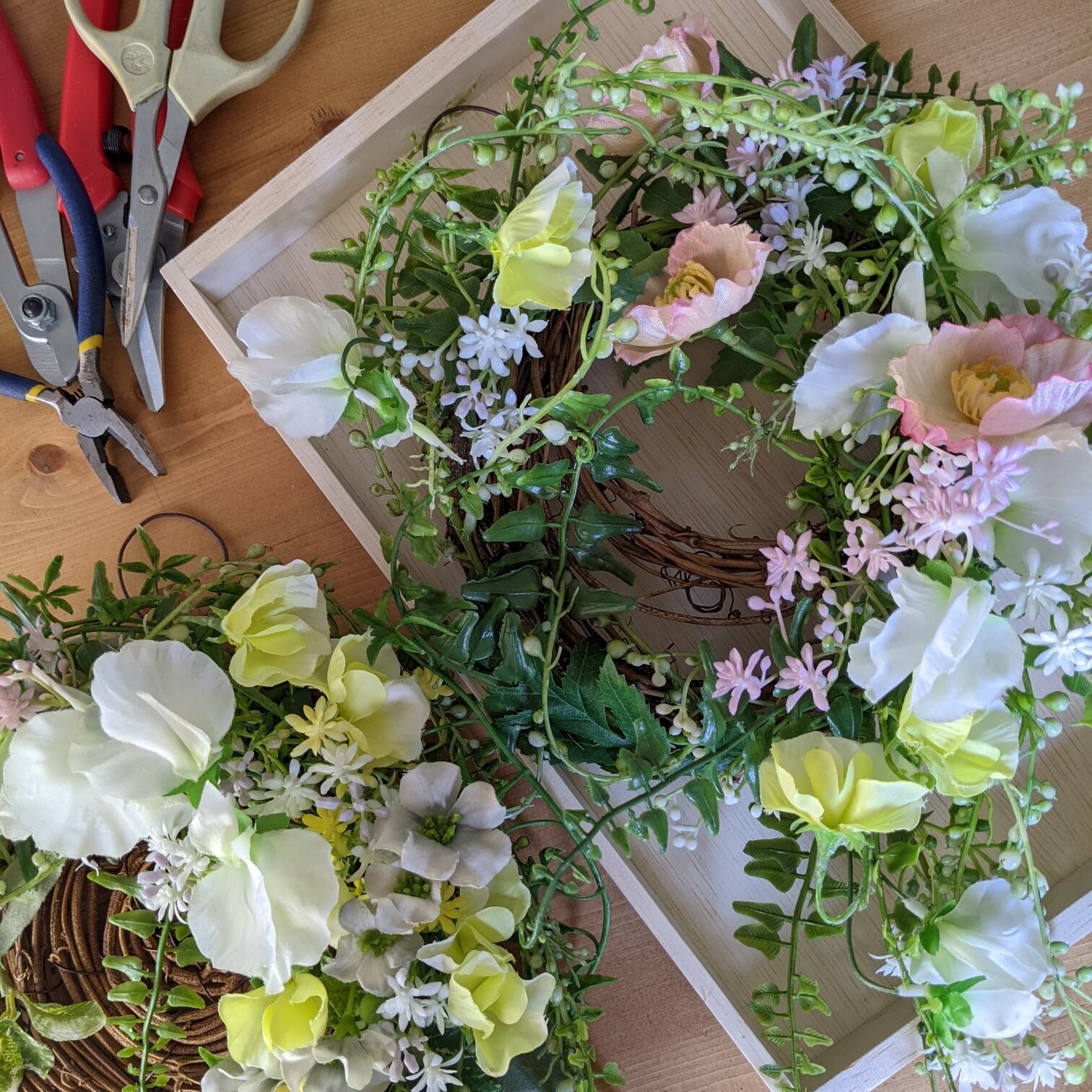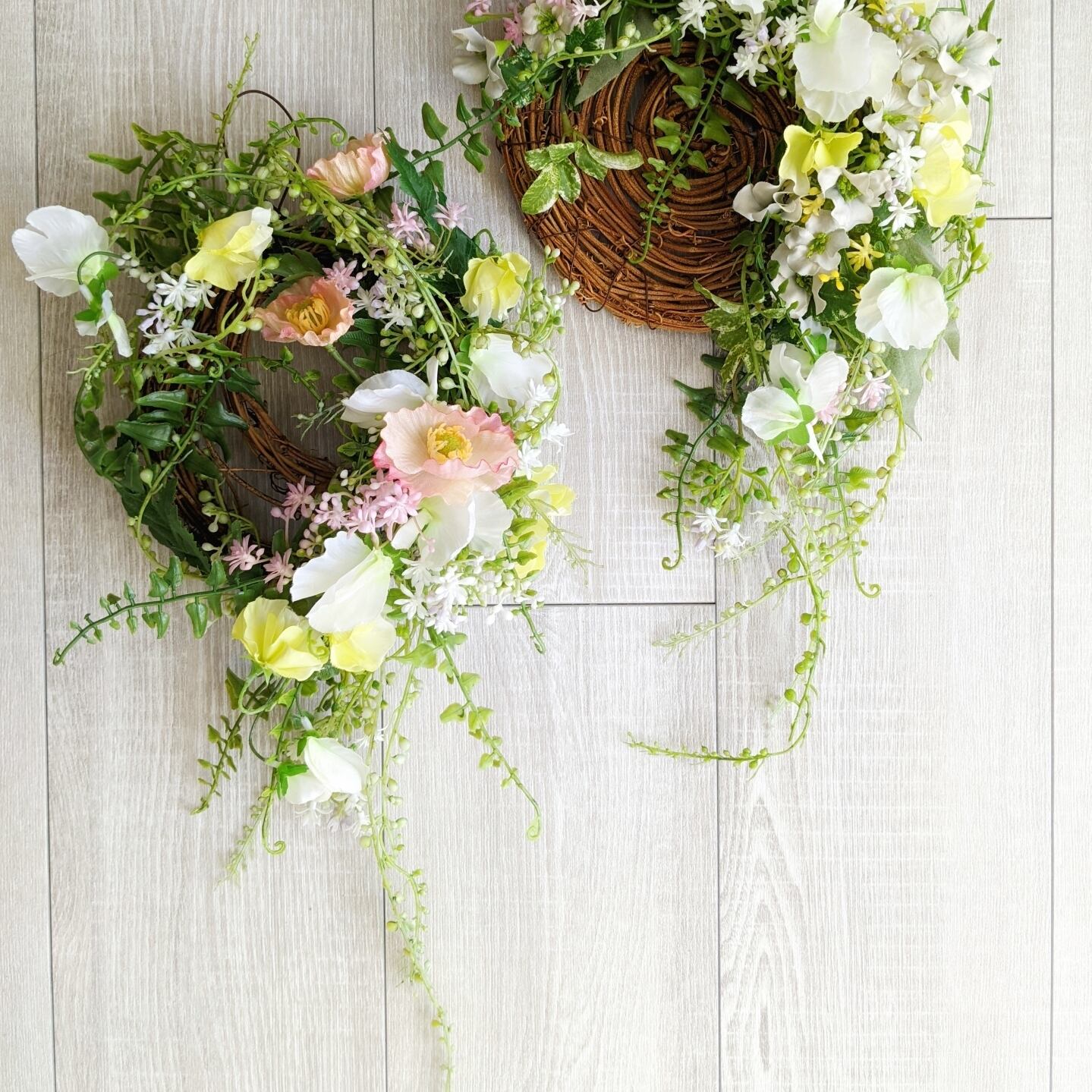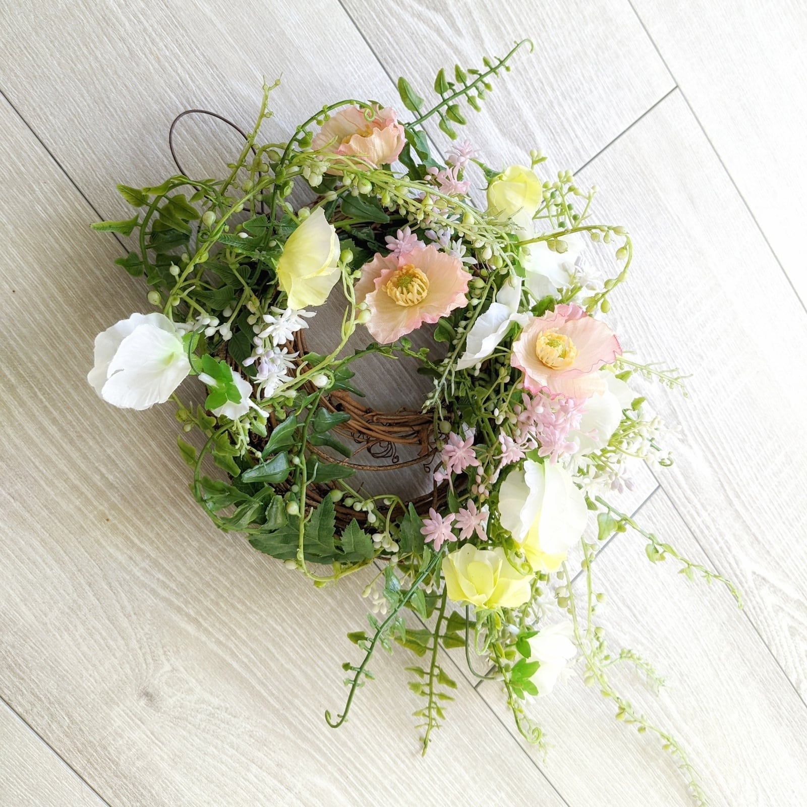 春色パステルカラーのひげづるリース ~スイトピー&ポピー