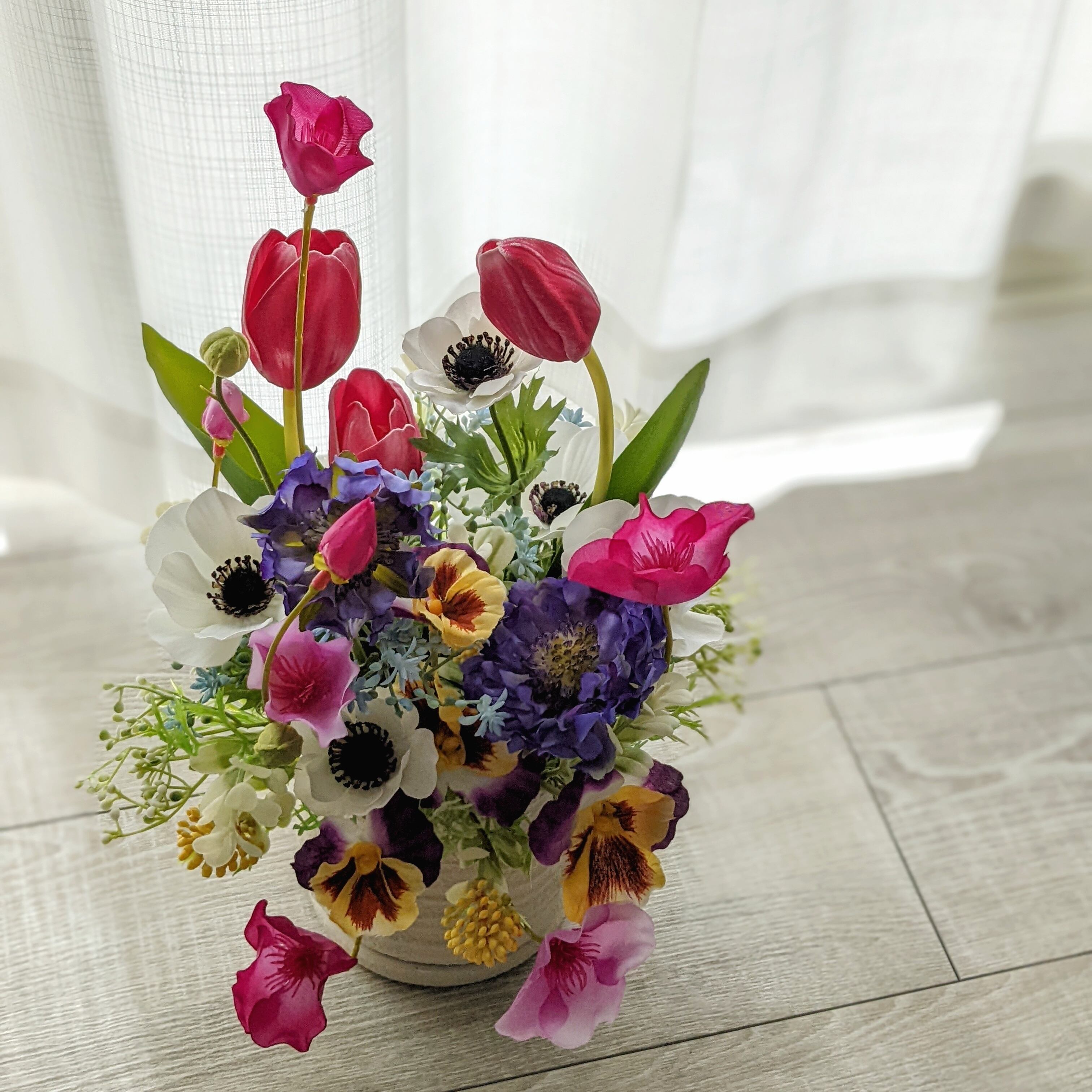 春花Mixアレンジメント~チューリップ×アネモネ×スカビオサ×ポピー×パンジー GARDEN POT 寄せ植え風